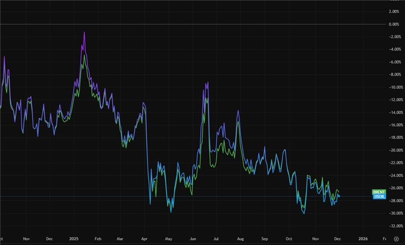 Cena ropy Brent i West Texas Intermediate letos výrazně oslabila. Brent je od začátku roku níže o 14 % a WTI dokonce o 16 %. Na trzích se tak nadále projevuje vliv vyšší nabídky a kroků OPEC, který letos zvýšil produkci a zároveň potvrdil, že plánované přestávky v navýšení těžby odloží až na začátek roku 2026.