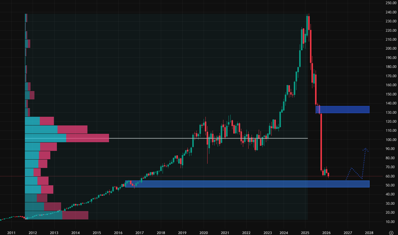 Akcie společnosti Fiserv se už blíží k supportní úrovni z roku 2016. Jedná se o menší konsolidační pásmo s drobnou prodejní korekcí a je otázkou, zda tento slabší level dokáže zabránit případnému pokračování agresivního výprodeje. Prozatím investoři nemohou pozorovat žádnou výraznou nákupní aktivitu, přičemž nejbližší rezistence se nachází až okolo ceny 130 USD, což je horní hrana prodejního gapu. Pokles akcií pod hodnotu 50 USD už by však mohl spustit další lavinu výprodejů, která by cenu akcií mohla vrátit až na hodnoty z roku 2012.