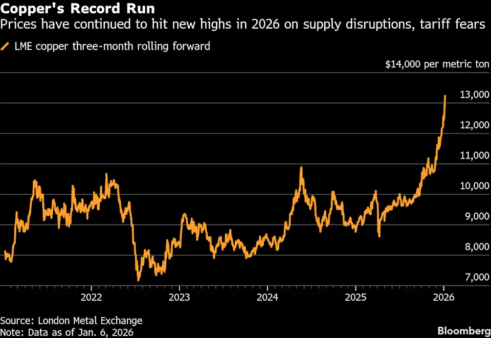 Cena mědi se v posledních měsících dostala na historická maxima nad 13 000 USD za tunu. Růst cen podporují výpadky těžby, geopolitická rizika i přesuny zásob. S&P Global však upozorňuje, že samotné vysoké ceny nejsou dlouhodobým řešením. Rozšíření těžby i hledání materiálových náhrad totiž vyžaduje čas a přináší značnou míru nejistoty.
