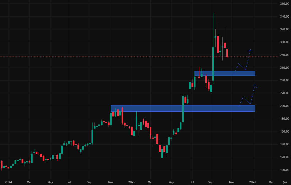 Akcie $ORCL poměrně agresivně zamítly vyšší cenové úrovně s tím, že ještě nepřišel volatilní cenový pokles. Pokud by se tak stalo, může být nejbližší support pro invesotry celkem rizikový. Další support by již mohl být o něco zajímavější, ovšem nachází se až na ceně 200 USD, což by znamenalo výrazný cenový pokles.